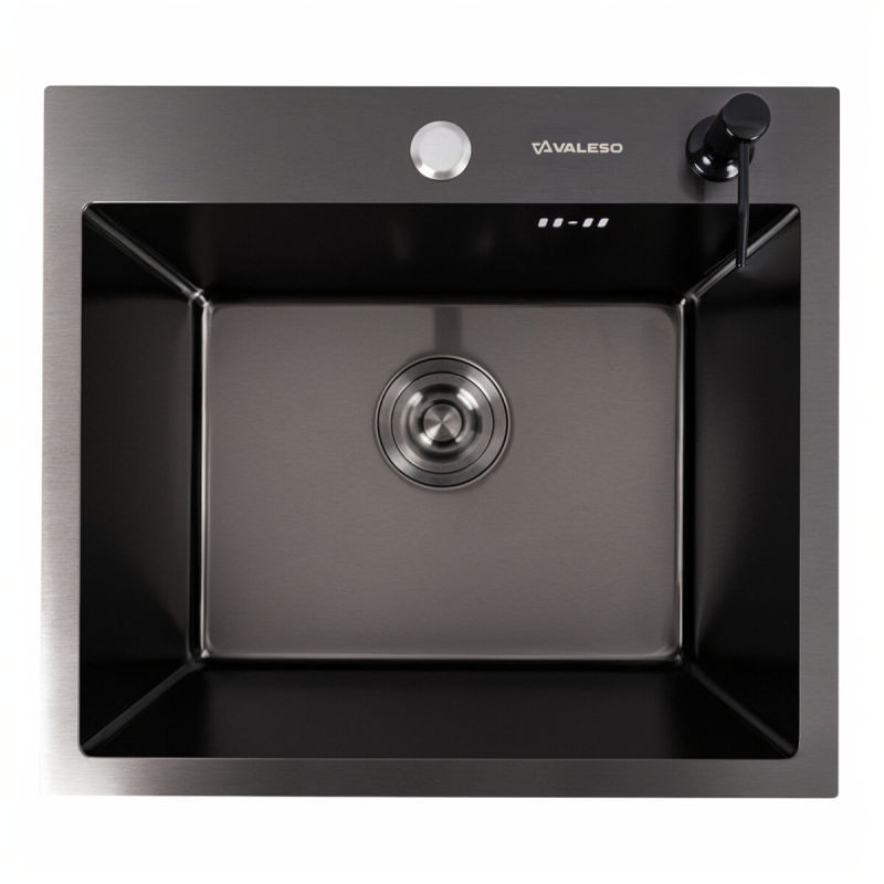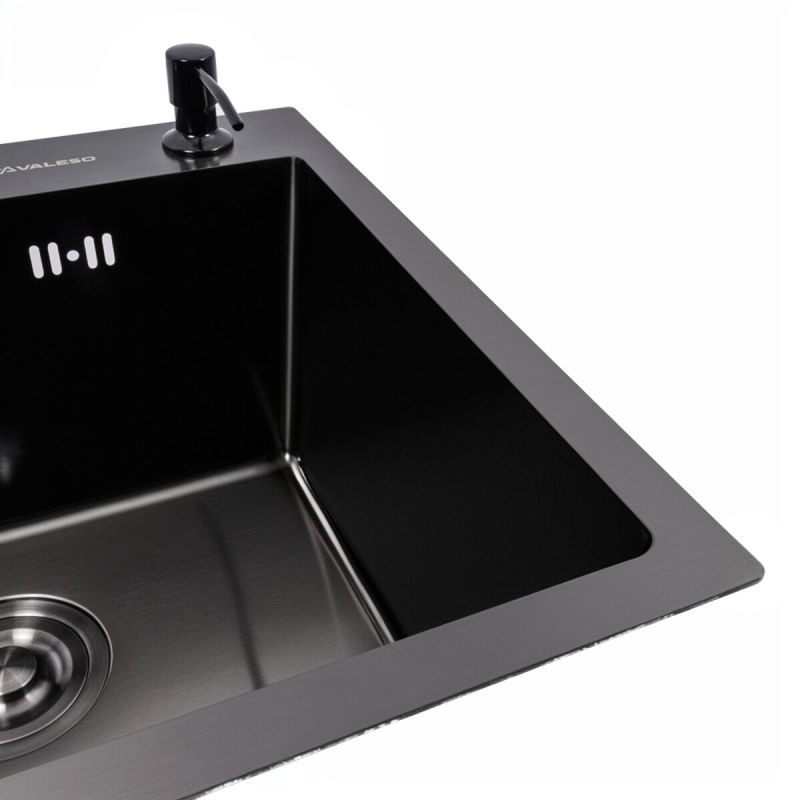 Опис Кухонна мийка Valeso Handmade 50x45 PVD чорна (сифон круглий 3,0/0,8)