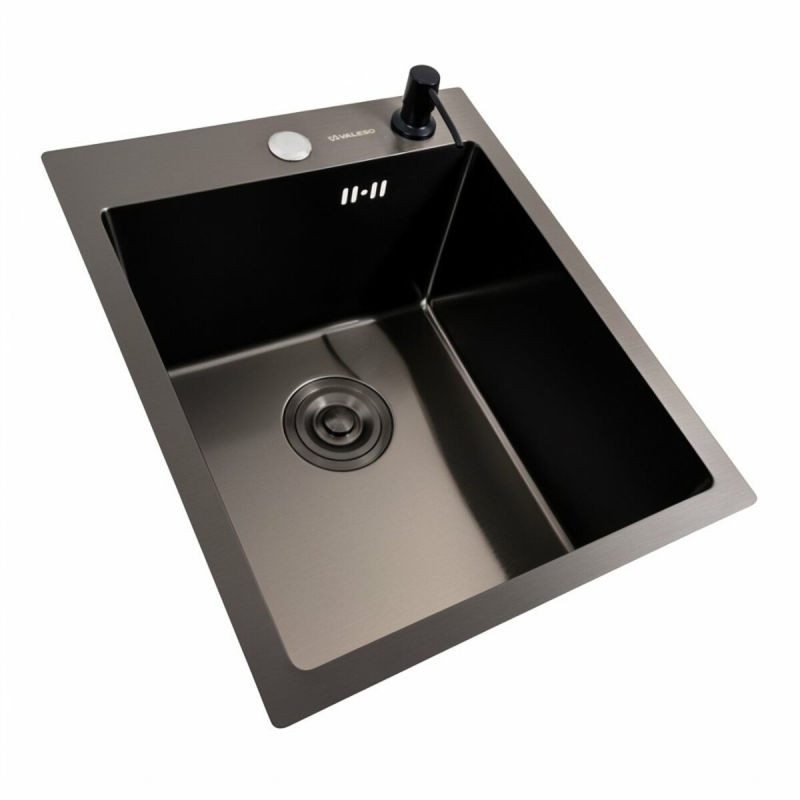 Опис Кухонна мийка Valeso PVD чорна 40x50 (сифон крулій 3,0/0,8)