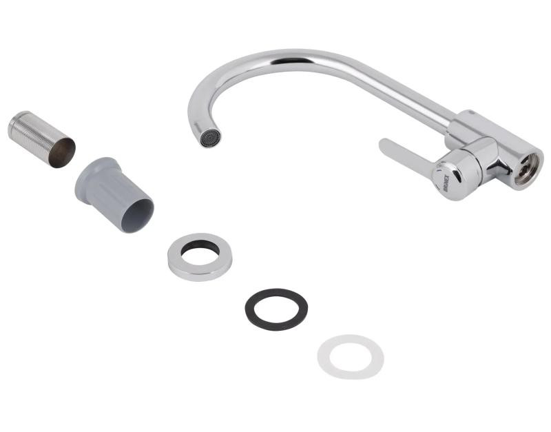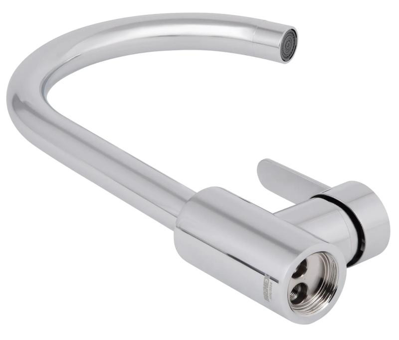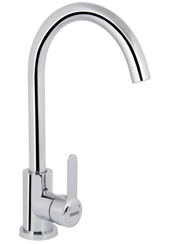 Змішувач для кухні Brinex Pure 015F U-подібний Chrome – класичний дизайн у поєднанні з блискучим хромовим покриттям. Корпус із нержавіючої сталі гарантує довговічність та стійкість до впливу вологи. Високий вилив та керамічний картридж забезпечують зручність та надійність. Комплектація: змішувач, кріплення.