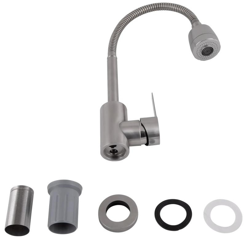 Змішувач для кухні Brinex Pure 015F41 із гнучким виливом Nickel – універсальне рішення для кухні. Гнучкий вилив дозволяє легко направити потік води в потрібне місце. Нікельове покриття стійке до пошкоджень та корозії. Надійний керамічний картридж забезпечує плавну роботу. Комплектація: змішувач, кріплення.