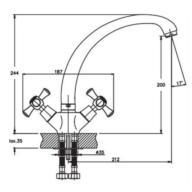 У комплекті Аератор Neoperl, гнучка підводка з нержавіючої сталі, кріпильна шпилька