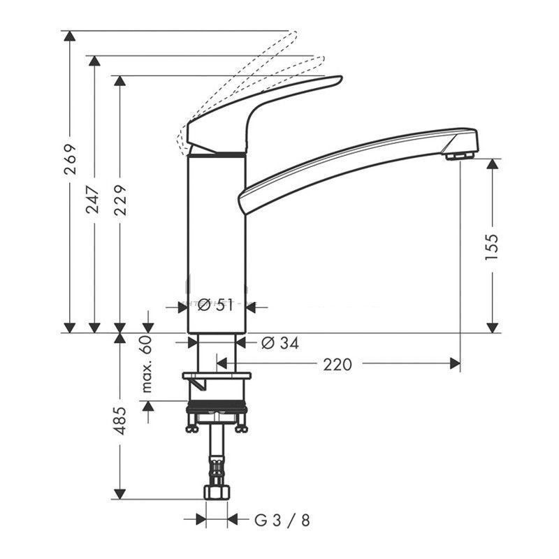 Опис Кухонний змішувач Hansgrohe Focus M41 KM 160 Eco CoolStart 31816000