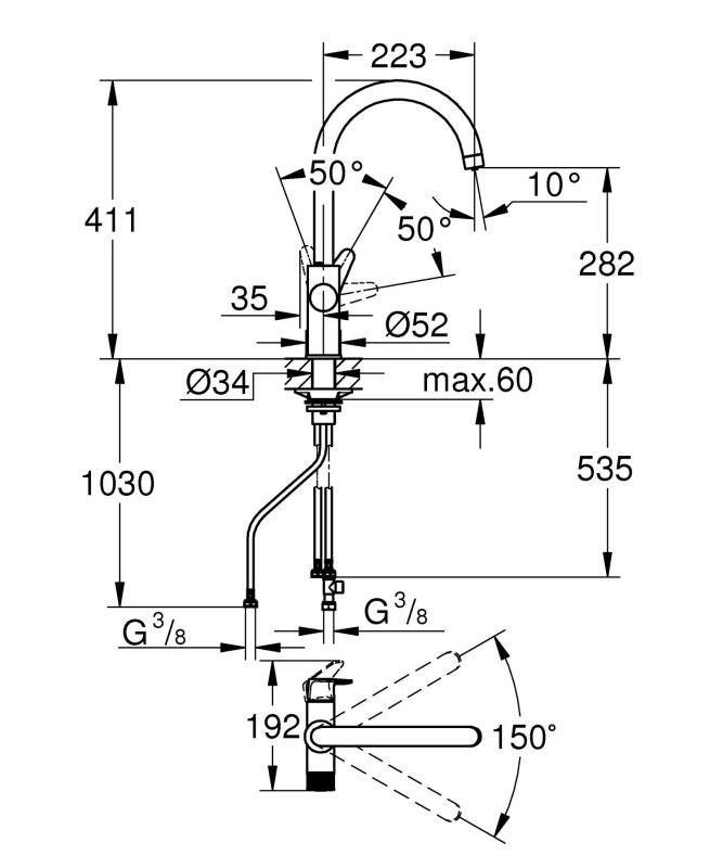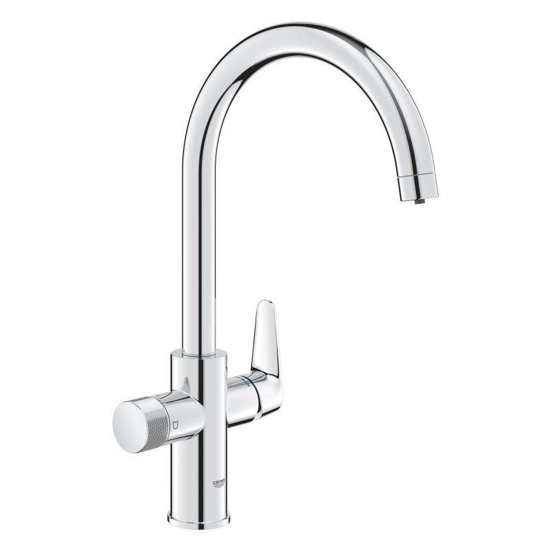 Змішувач має всередині керамічний картридж GROHE SilkMove, що забезпечує плавний та точний контроль напору та температури. І є окремі внутрішні водні канали, щоб фільтрована та нефільтрована вода не змішувалися. Високий С-подібний вилив з можливістю обертання на 150 ° є практичним та інтуїтивно зрозумілим у використанні. Він ідеально підходить для наповнення та миття великих каструль або графинів. Міцне фінішне покриття GROHE Long-Life Shine легко чиститься та збереже свій гарний вигляд протягом багатьох років використання. Цей кран підходить для будь-якої системи фільтрації GROHE під раковиною з розеткою 3/8”.