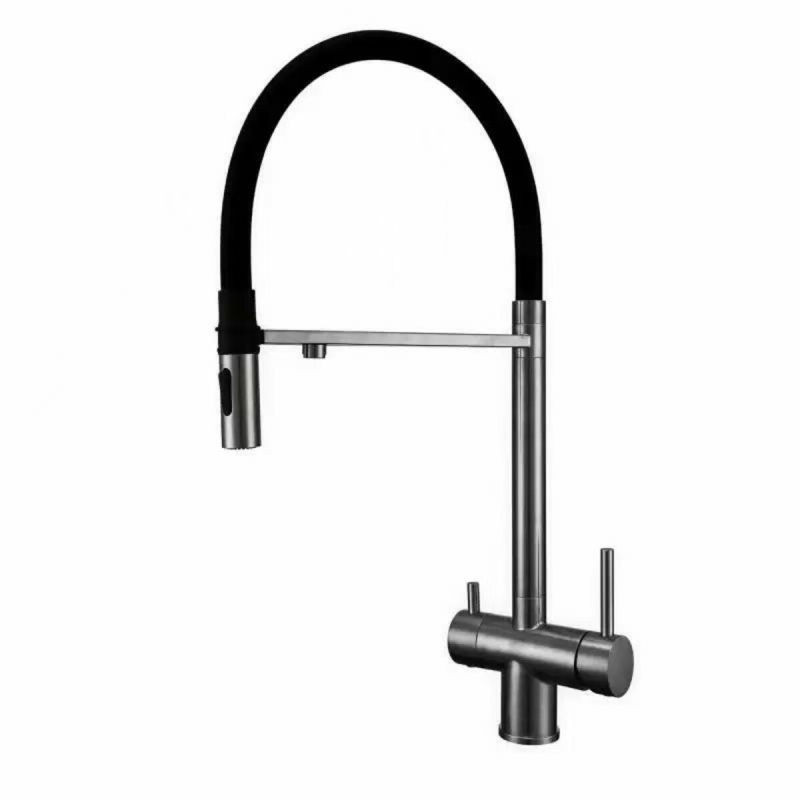 Чорне PVD-покриття підкреслює сучасний і преміальний вигляд змішувача, роблячи його не лише функціональним, а й стильним акцентом вашої кухні. У комплекті йдуть гнучкі шланги та необхідні комплектуючі для легкого монтажу і надійної експлуатації.