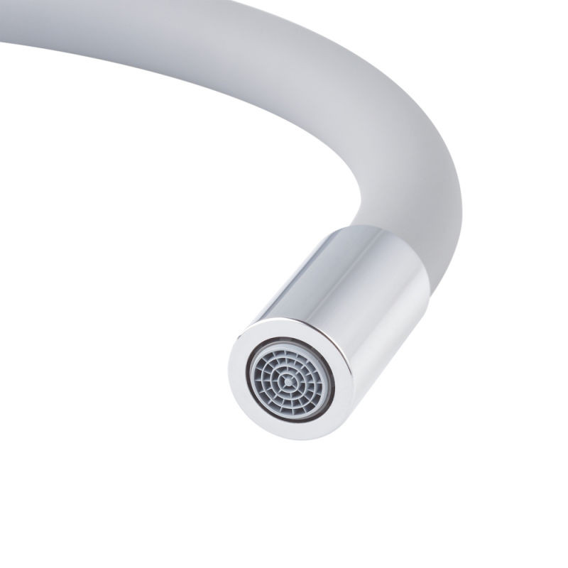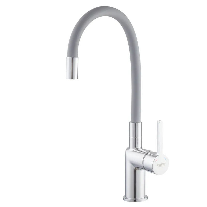 Koer KB-70029-01 — функціональний кухонний змішувач із гнучким силіконовим виливом, який забезпечує максимальну зручність у щоденному користуванні. Сучасний хромований корпус і м’який вигин шланга поєднуються в стильному мінімалістичному дизайні.