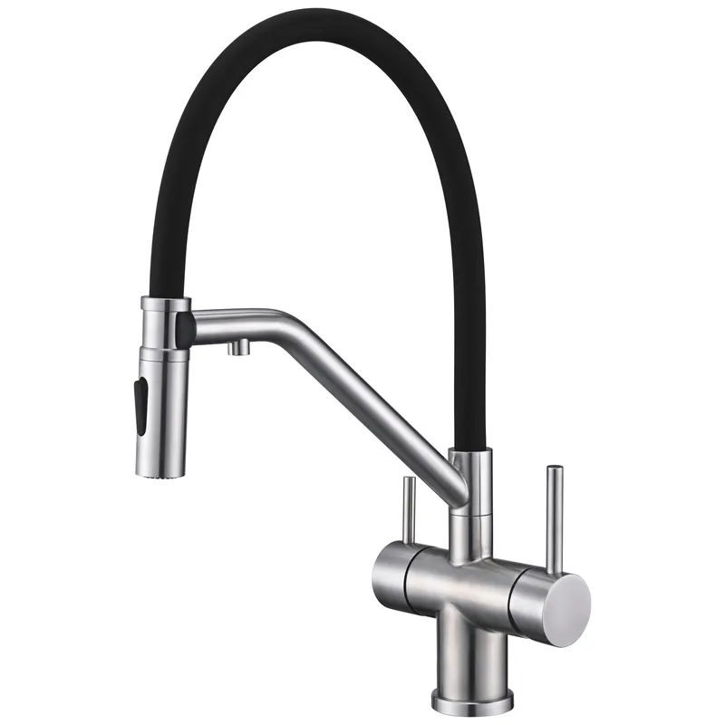 • Призначення: Змішувач на дві води (звичайна + фільтрована) з гнучким виливом