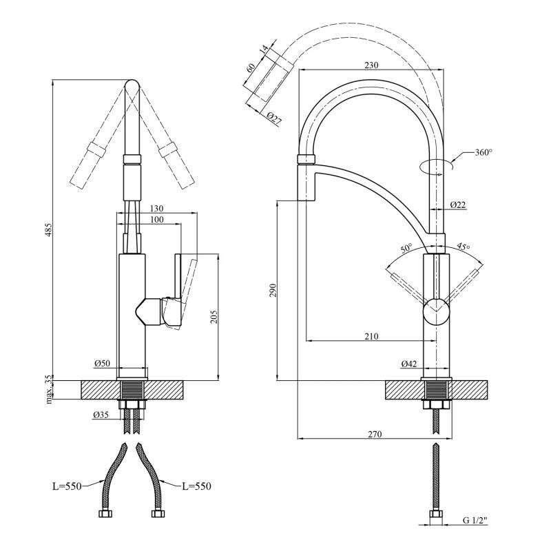 Кухонний змішувач Kroner KRP Ersel - C03900BLK (CV033801) Відгуки