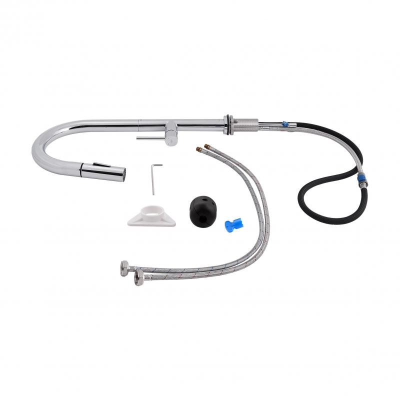 Змішувач для кухні з висувним виливом Qtap Lenicka 9138103UC виготовлено з високоякісної нержавіючої сталі з глянцевим хромованим покриттям, що забезпечує довговічну безперебійну роботу виробу. Завдяки висувній формі виливу і двом режимам подачі струменя, які перемикаються кнопкою на виливі, можна з легкістю очистити важкодоступні місця на посуді. Довжина висувного шланга 1470 мм. Управління температурою і напором води здійснюється за допомогою зручного важеля.