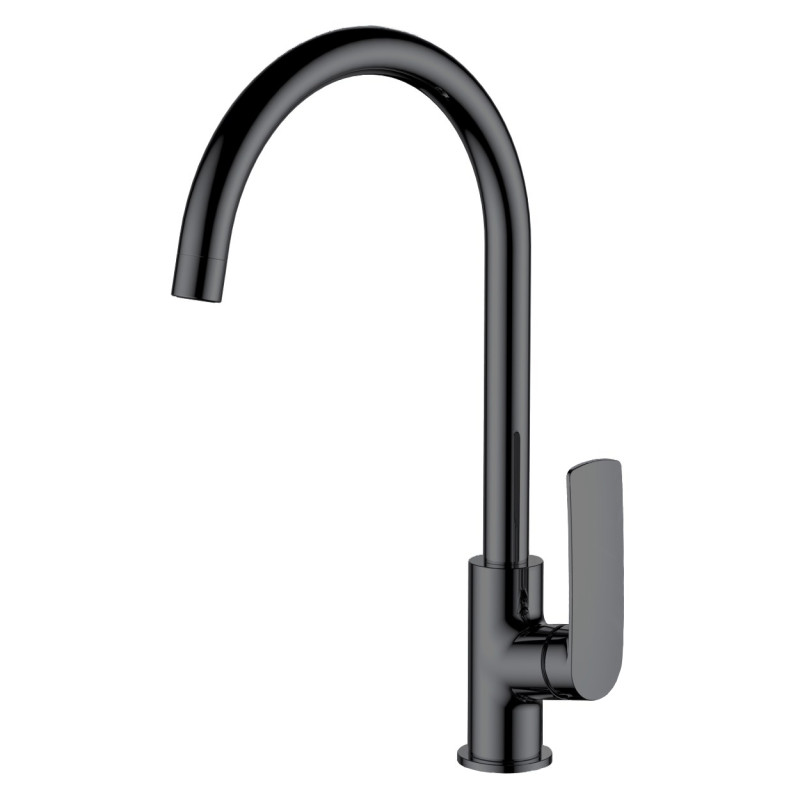 Змішувач для кухонної мийки Volle Cante 1512.111005 виготовлений з латуні та має оригінальний колір покриття - графіт. Високий поворотний вилив дозволяє використовувати змішувач для кухонних мийок великих розмірів або мийок із двома чашами. Точне налаштування напору та температури води контролює довговічний керамічний картридж. Для формування потужного та рівного струменя передбачений аератор, який змішує воду з повітрям і перешкоджає розбризкуванню. Сам змішувач встановлюється на один отвір і підключається за допомогою гнучких шлангів, що входять до комплекту постачання.