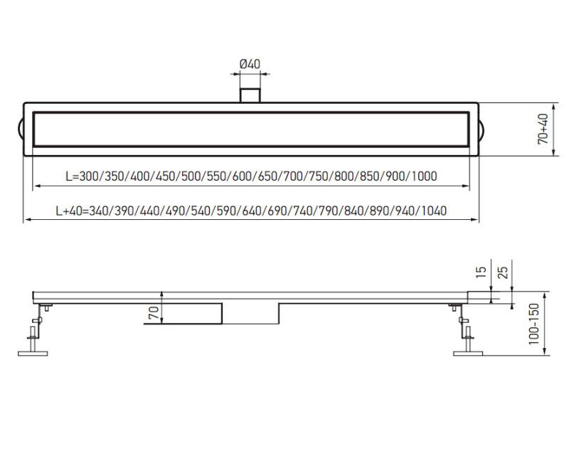 Комплектація Водовідвідний жолоб, решітка, гідроізоляційна стрічка, що відповідає жолобу, комбінований гідрозатвор SMART з двома відсіками та кульками, опорні ноги, монтажний гачок