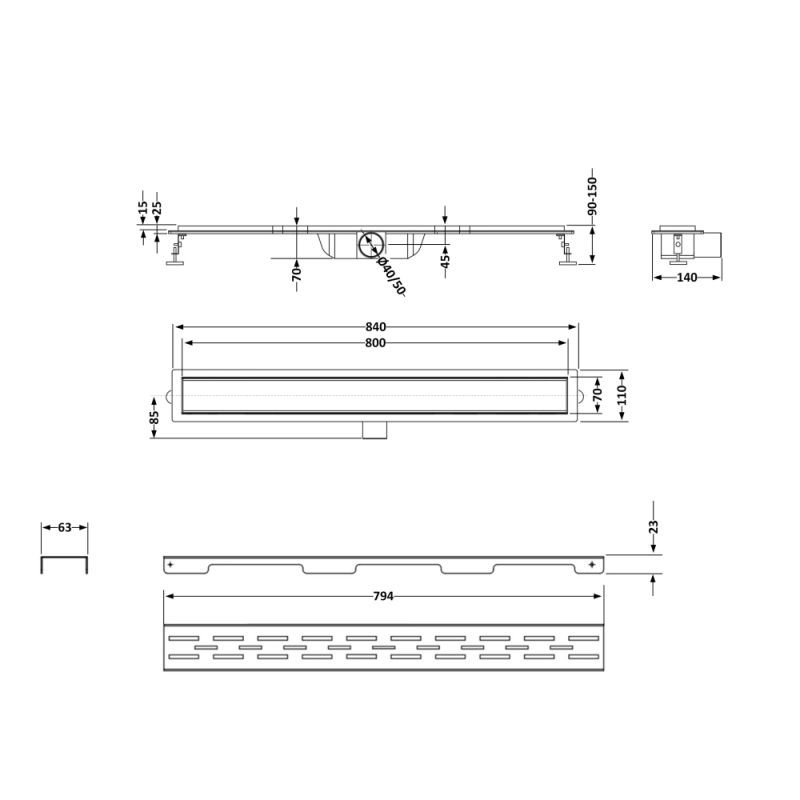 Комплект включає міцний корпус трапу та ґрати. Сухий затвор забезпечує надійний захист від проникнення неприємних запахів із каналізації без використання водяного затвора. Ідеально підходить для душових кабін та ванних кімнат.