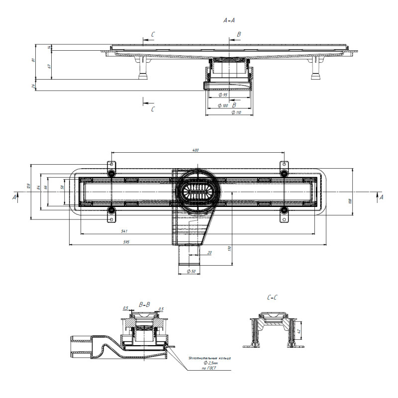 Лінійний трап Waterway Stream 550 мм чорний з решіткою Wave (нерж/шліф) (WSB600003N1) Відгуки