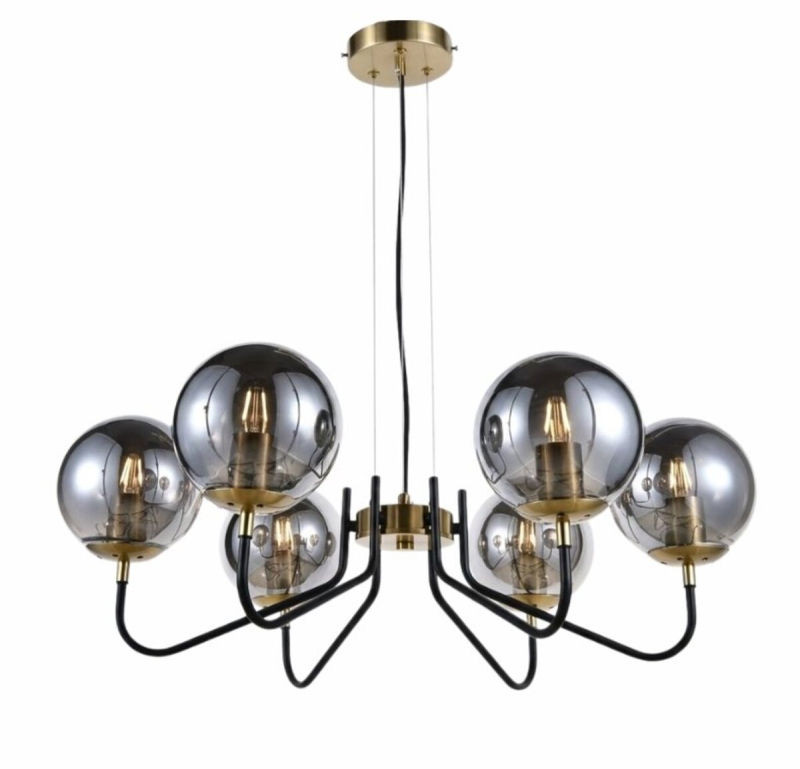 Шість скляних плафонів рівномірно розподіляють світло по всьому приміщенню, створюючи комфортну атмосферу для відпочинку чи прийому гостей. Використання стандартного патрона E27 дозволяє легко підібрати як енергоефективні світлодіодні лампи, так і декоративні лампи в стилі лофт.
