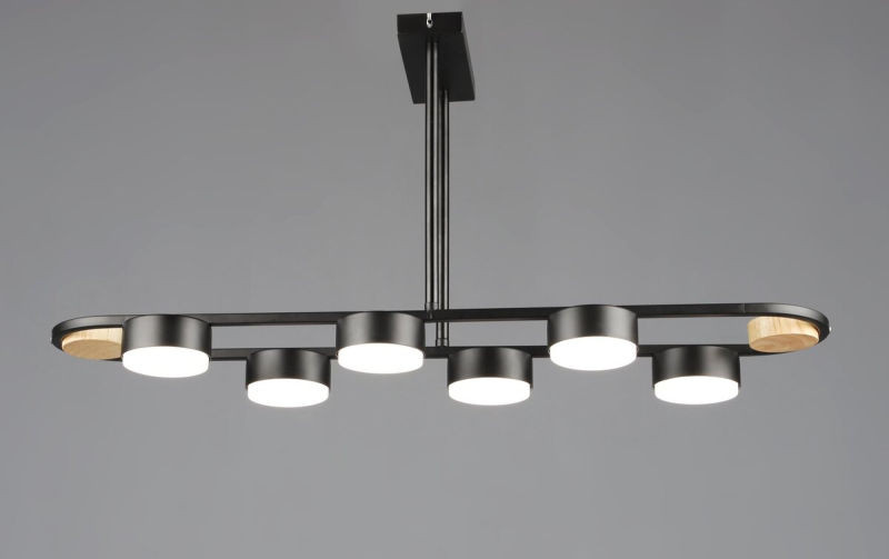 Представляємо стильну підвісну люстру VALESO N6720/6 — ідеальний вибір для зонування простору та створення фокусного освітлення над обіднім столом, барною стійкою чи робочою зоною. Дизайн моделі гармонійно поєднує індустріальний шик і теплоту натуральних матеріалів.