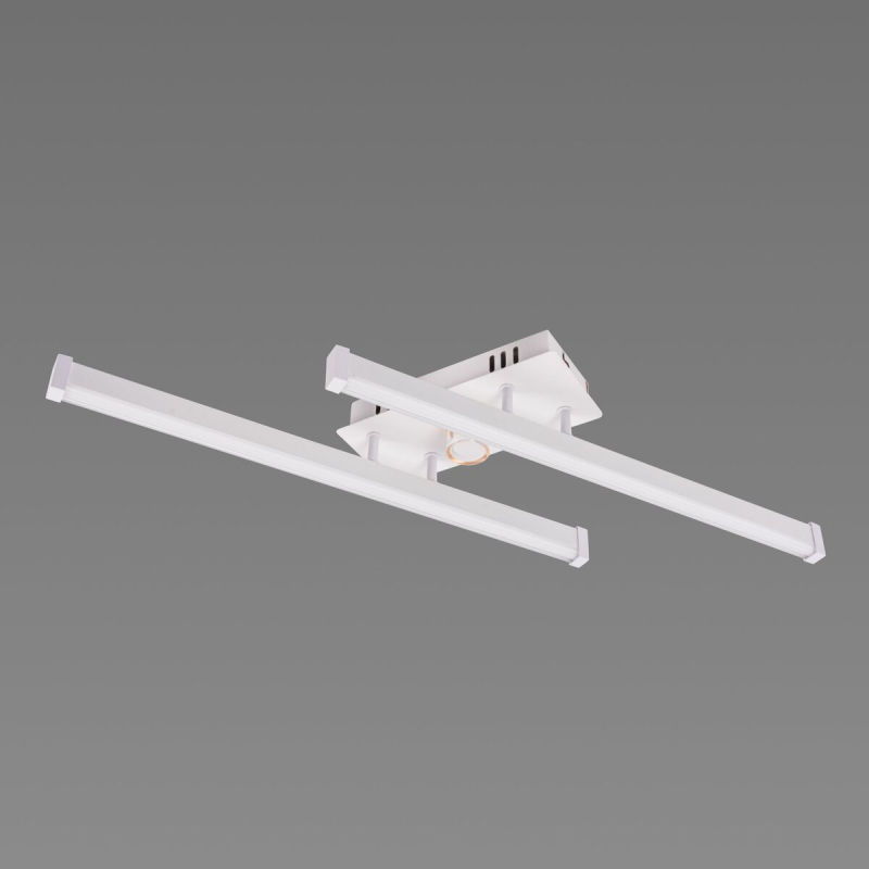 Світильник оснащений 2 вбудованими LED-модулями (загальна потужність 20W), що забезпечують потужний світловий потік 5500 люменів. Особливість моделі — можливість перемикання колірної температури: 3000K (тепле світло) та 6500K (холодне світло), що дозволяє створити потрібну атмосферу. Розмір виробу: довжина 560 мм, ширина 475 мм, висота 110 мм. Завдяки невеликій висоті, ця люстра ідеально підходить для кімнат зі стандартними або низькими стелями.