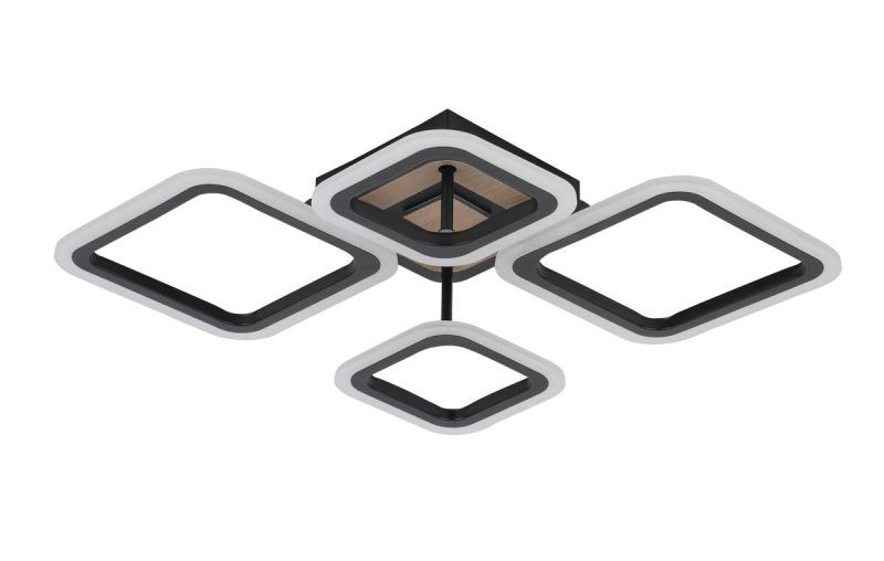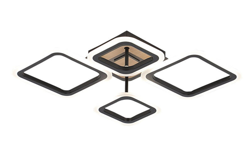 Керування всіма режимами та димуванням здійснюється зручним пультом дистанційного керування 2.4G. Розміри виробу становлять 615*480 мм при висоті всього 110 мм, що робить її ефективною та стильною для приміщень з різною висотою стелі. Надійність та якість гарантують матеріали: акрил, метал та дерево.