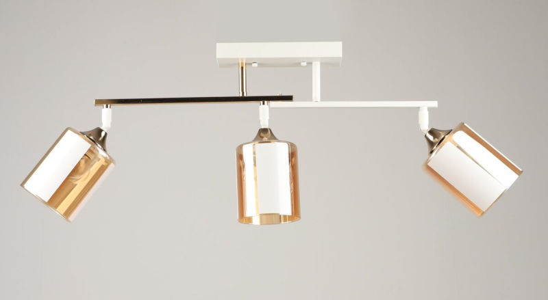 Опис Люстра стельова Valeso K2322/3 на 3 плафони E27, Білий+Золото, Метал/скло