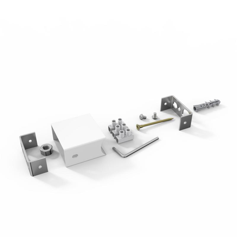 Модуль прихованого підключення призначений для електричних сушки для рушників з регулятором на стійці (ковпачок-крутилка або кнопковий). За допомогою даного модуля можна приховати електропроводку, значно підвищивши естетичність підключення сушки для рушників.