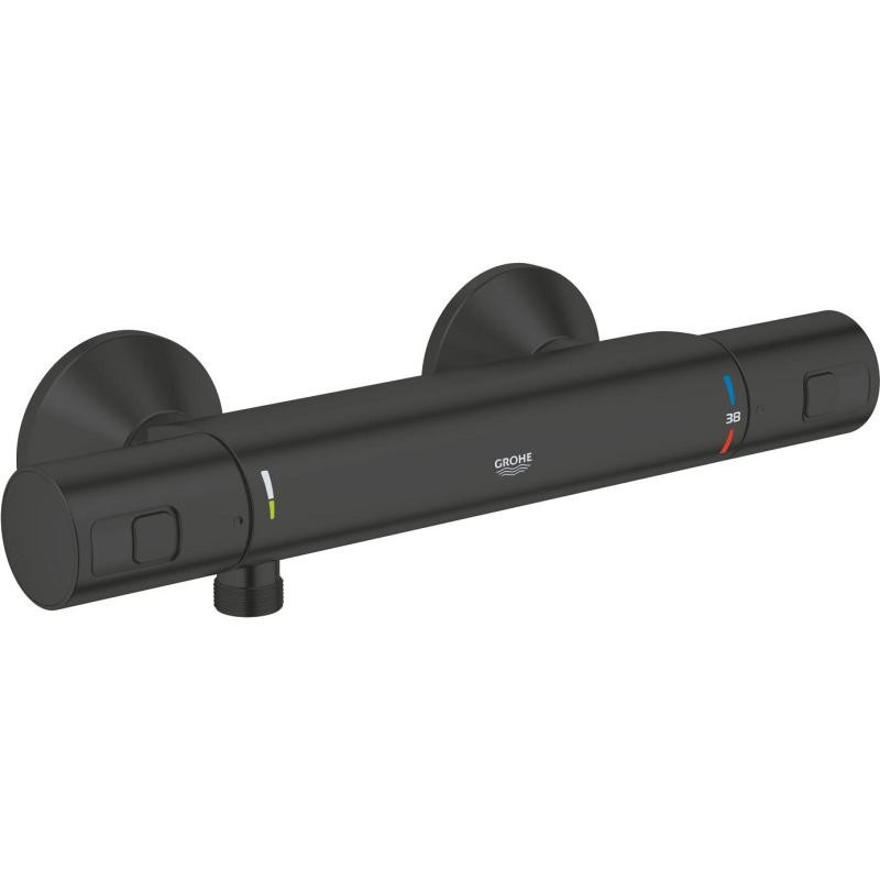 Термостатичний змішувач для душу GROHE Precision Start чорного матового кольору має чудові функції безпеки та прості у використанні елементи керування. Завдяки тонкому циліндричному корпусу цей настінний змішувач ідеально підходить для створення мінімалістичного дизайну інтер'єру. А його приваблива ціна робить його ідеальним доповненням для тих, хто хоче всіх переваг термостату. Це тому, що всередині міцного металевого корпусу термостата технологія GROHE TurboStat забезпечує постійну температуру води під час прийняття душу, навіть якщо тиск у мережі коливається. Це також зручно для сім'ї, оскільки кнопка GROHE SafeStop встановлена на 38 ° C, щоб користувачі душу, особливо діти, не підвищували температуру води надто високо. Обмежувач температури GROHE SafeStop Plus можна встановити на 43 ° C для додаткового захисту. Технологія GROHE Water Saving зменшує потік води для екологічного споживання, але, коли вам потрібен повний потік, ви можете просто натиснути кнопку EcoButton. Міцне та просте у догляді покриття GROHE Long-Life зберігає змішувач в ідеальному вигляді протягом усього життя. Термостатичний змішувач для душу GROHE Precision Start - швидке та суттєве оновлення ванної кімнати!