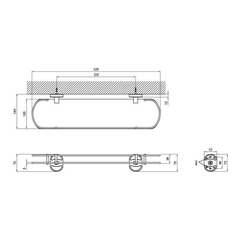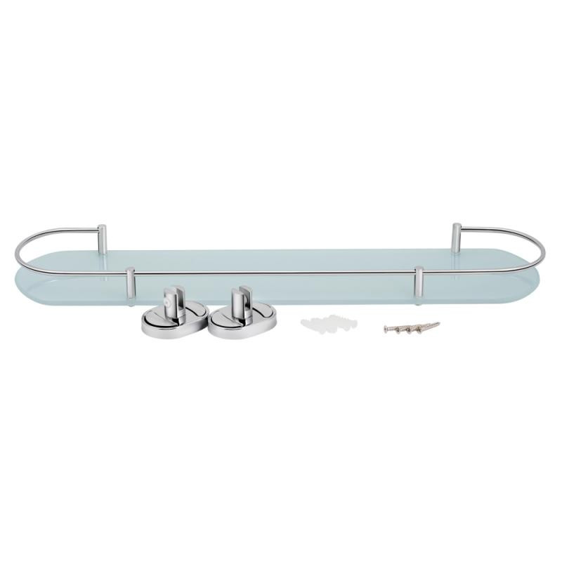 Цікаве дизайнерське рішення полиці для ванної кімнати з округлими краями підійде до будь-якого інтер'єру та зробить його привабливішим. Полиця Lidz (CRG) 114.09.02 виготовлена з прозорого скла з пластинами кріплення з високоякісного металу з хромованим покриттям. Довжина полиці – 520 мм. Полку можна розташувати під дзеркалом і зберігати на ній ванни гігієни, а бортик захистить їх від випадкових падінь.