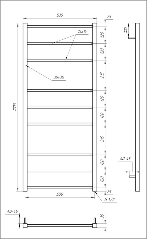 Розмір (ВxШxГ), см : 120x53x3