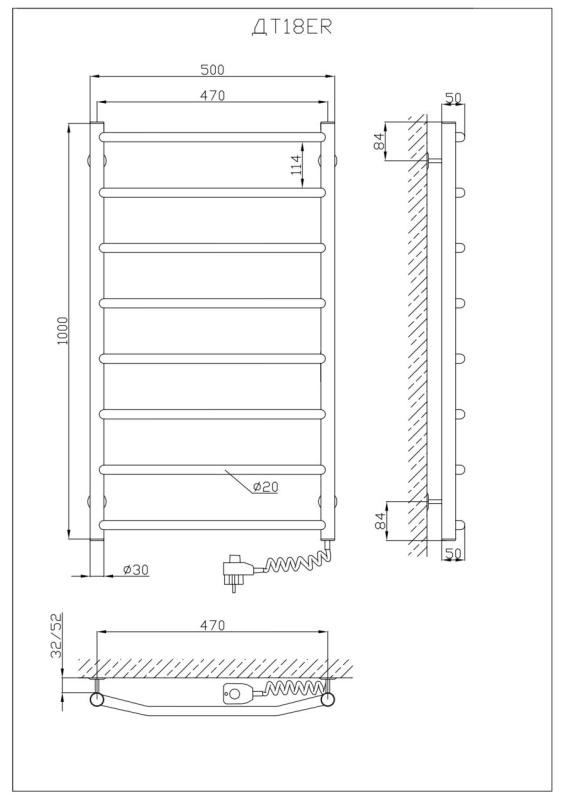 Опис Рушникосушарка Kosser Трапеція 1000х500/8 ЕR