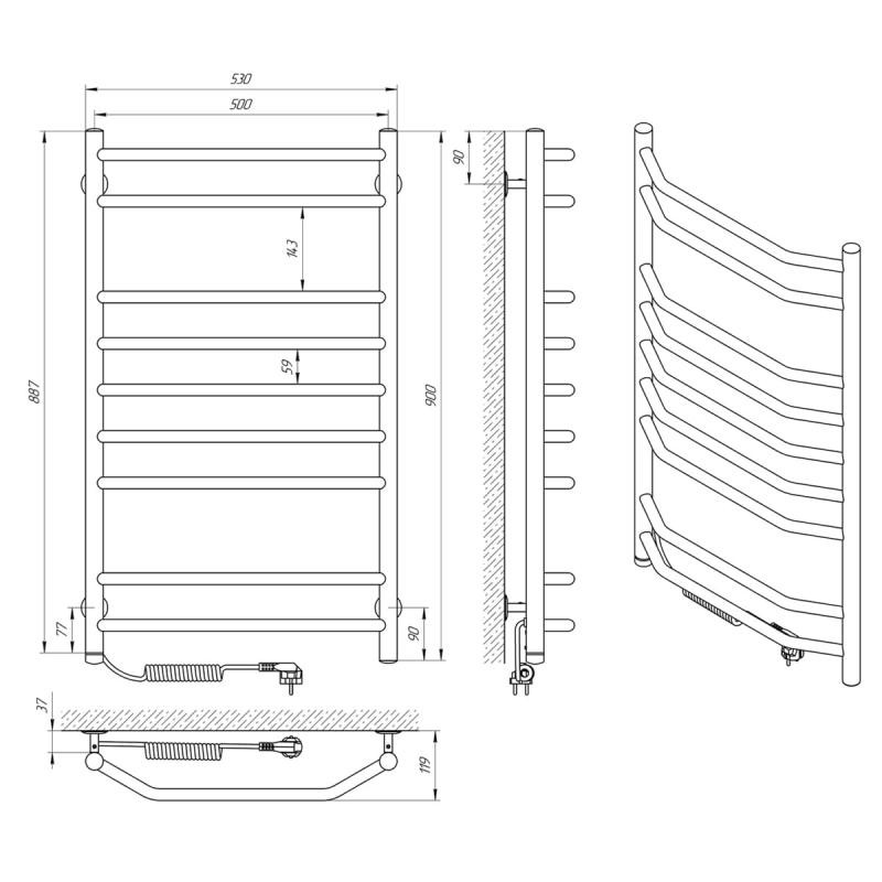 Опис Рушникосушарка Laris Вікторія П9 500x900 Лівий (73207826)
