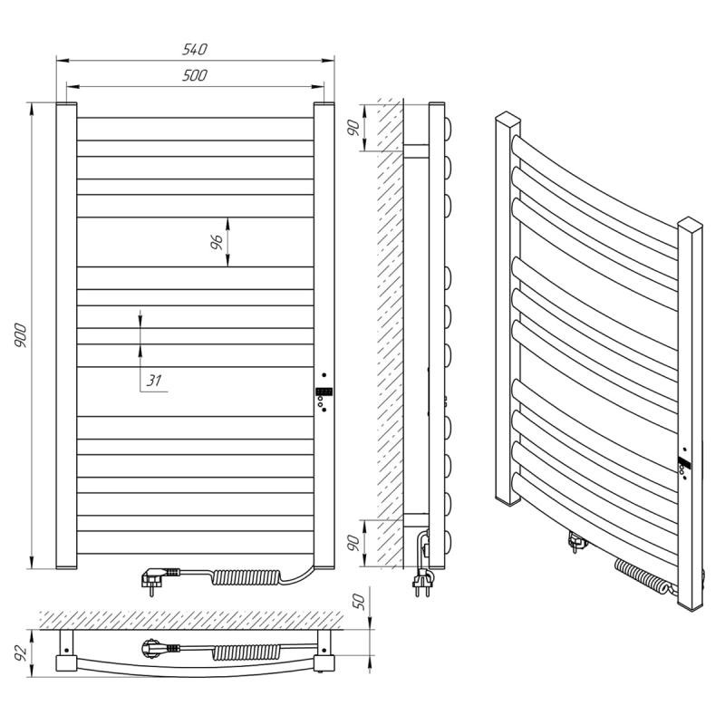 Опис Рушникосушарка Laris Зебра Атлант Преміум ЧК10 500x900 Е Правий (75201084)