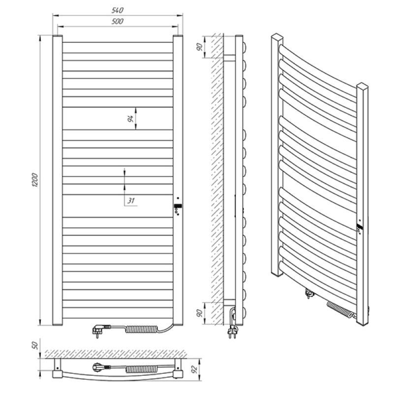 Опис Рушникосушарка Laris Зебра Атлант Преміум ЧК14 500x1200 Правий (75201082)