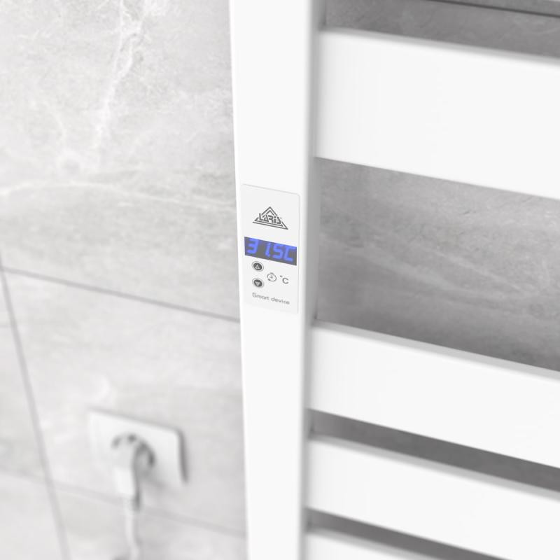 Особливості: управляє нагрівом електрополотенцесушітеля мікропроцесорний термоконтроллер (сенсорне управління). Для початку роботи необхідно задати температуру сушки для рушників (можна по годинною програмою з добовим або тижневим циклом). Електронний електропередатчік контролює температуру поверхні рушникосушки, що виключає його перегрів при підвищеній напрузі електромережі.