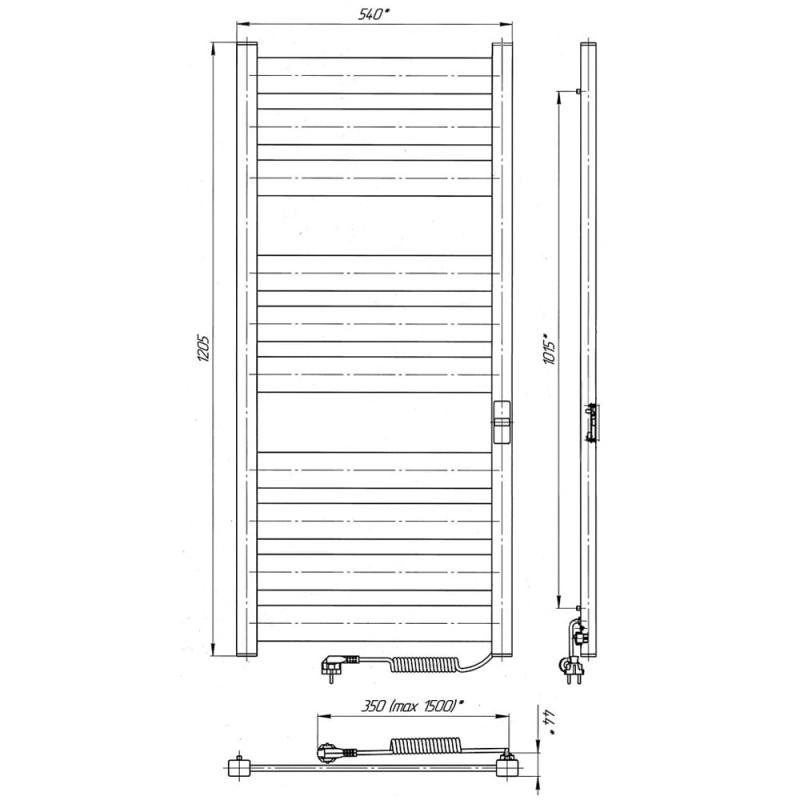 Особливості: управляє нагрівом електрополотенцесушітеля мікропроцесорний термоконтроллер (кнопкове управління). Для початку роботи необхідно задати температуру сушки для рушників (можна по годинною програмою з добовим або тижневим циклом). Термодатчик контролює температуру поверхні рушникосушки, що виключає його перегрів