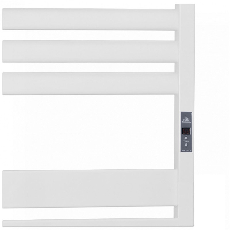 Особливості: управляє нагрівом електрополотенцесушітеля мікропроцесорний термоконтроллер. Для початку роботи необхідно задати температуру полотенцесушителя. Додатково можна вмикати / вимикати нагрів, програмно знижувати потужність до 50%. Термостат контролює температуру поверхні рушникосушки, що виключає його перегрів. Витримує напругу 1500 В змінного струму / хвилину. Є зручна функція блокування кнопок від дітей.