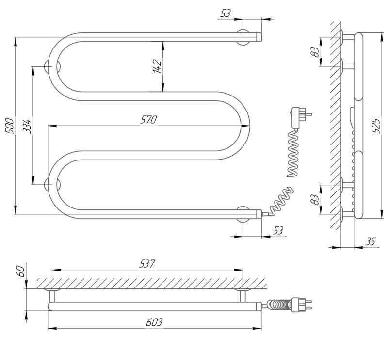 Опис Рушникосушарка Laris Змійовик 25 РС3 600х500 Правий (73207036)