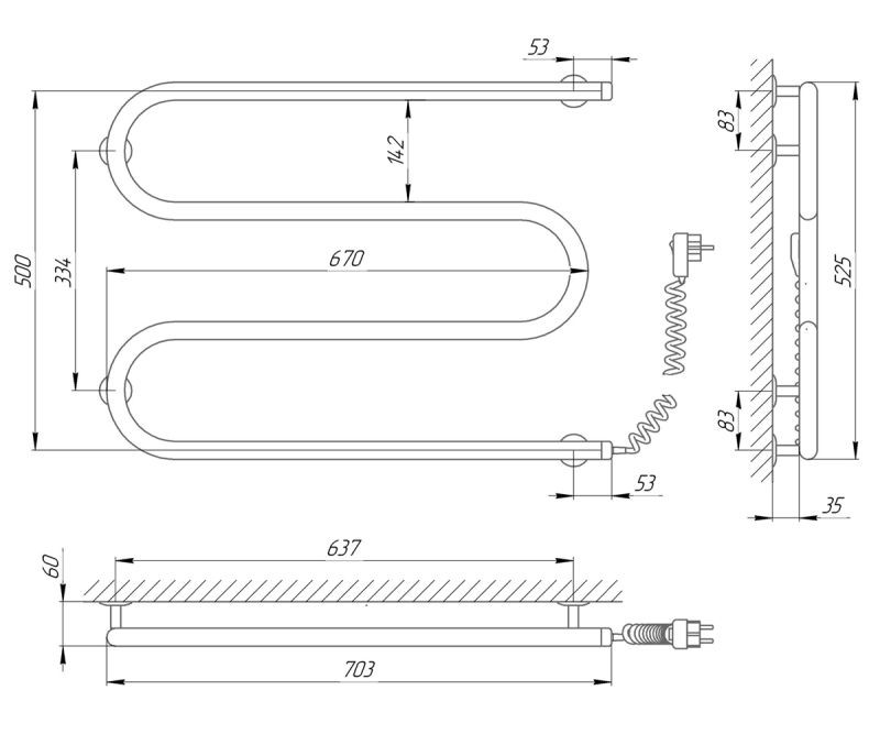 Рушникосушарка Laris Змійовик 25 РС3 700х500 Правий (73207038) характеристики: