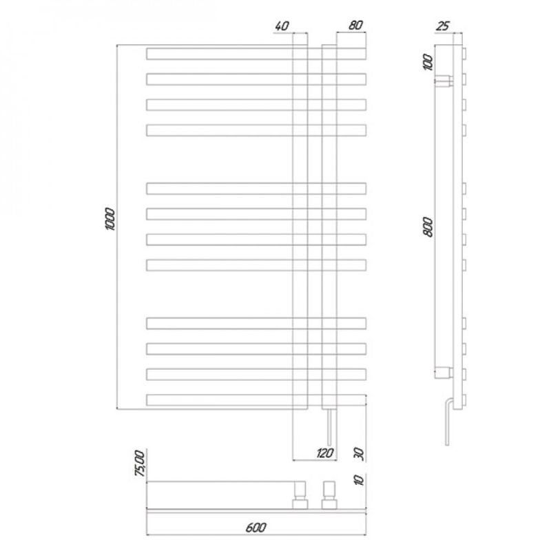 Особливості | Діаметр стійки - Ø40х25, товщина стійки - 1.2 мм, діаметр перемички - Ø30х10, товщина перемички - 1.2 мм. Максимальная рабоча температура 50-60 °C. Споживча потужність 315 Вт. |