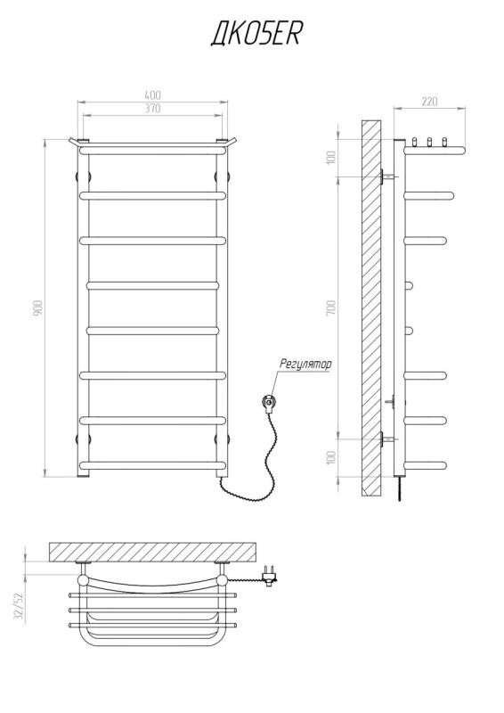 Особливості | Діаметр: стійка Ø30, товщина 1.5 мм; перемичка Ø20, товщина 1.5 мм. Максимальна робоча температура 50-60 ° C, Потужність, 135 Вт. |