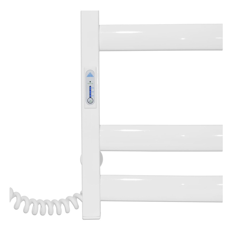 Особливості:управляє нагріванням электрополотенцесушителя мікропроцесорний термоконтроллер (кнопкове управління). Для початку роботи необхідно задати температуру рушникосушки. Термодатчик контролює температуру поверхні рушникосушки, що виключає його перегрів. Серед переваг регулятора-зберігання обраного режиму роботи (при відключенні робота відновитися в запрограмованому Користувачем режимі), наявність таймера відключення (3h) і колірної індикації роботи!