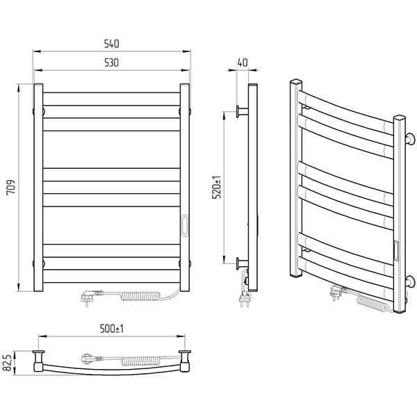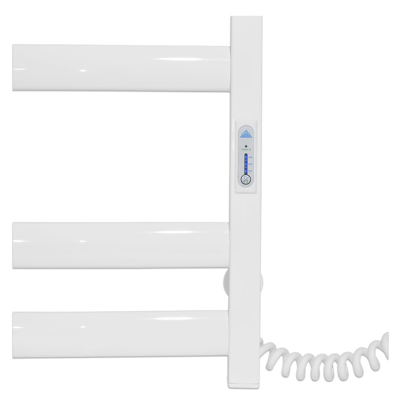 Особливості:управляє нагріванням электрополотенцесушителя мікропроцесорний термоконтроллер (кнопкове управління). Для початку роботи необхідно задати температуру рушникосушки. Термодатчик контролює температуру поверхні рушникосушки, що виключає його перегрів. Серед переваг регулятора-зберігання обраного режиму роботи (при відключенні робота відновитися в запрограмованому Користувачем режимі), наявність таймера відключення (3h) і колірної індикації роботи!