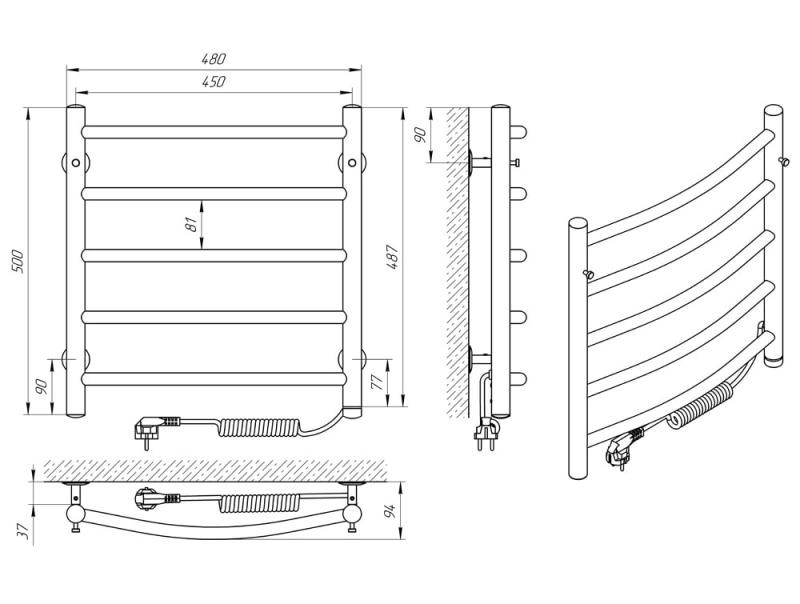 Рушникосушарка Laris Классік П5 450x500 Э Правый S3 (73207722) характеристики: