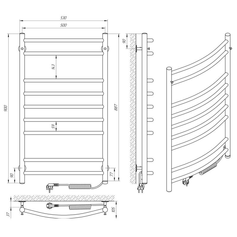 Рушникосушарка Laris Классік П9 500x900 Э Правый S3 (73207730) характеристики: