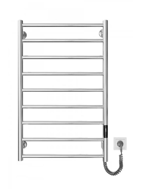 Конектор для підключення до розетки з будь-якої сторони. Має 9 ребер та стояк із круглої труби. Виготовлений із полірованої нержавіючої сталі без хромування. Варіанти покриття: полірований або сатин, чорний мат, графіт, білий глянець, золото, бронза, сатин, білий мат. Додатково для зручності використання можна оснастити гачками. Гарантія – 20 років на корпус/5 років на електричну частину.