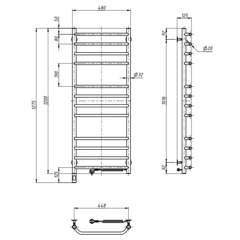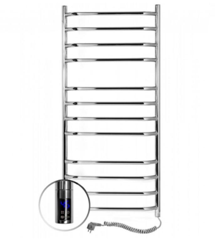 Електрична рушникосушарка Блюз 480х1200 сенсор з таймером, від українського виробника NAVIN виготовлениа з харчової нержавіючої сталі марки AISI 304, яка є стійкою до подряпин і механічних пошкоджень, а також володіє високою антикорозійною стійкістю. Товщина стінки перемичок рушникосушарки складає 1,5 мм, а стійок 2 мм. Рушникосушарка має дзеркальну поліровану поверхню, отриману шляхом високоточного електроплазменого полірування.
