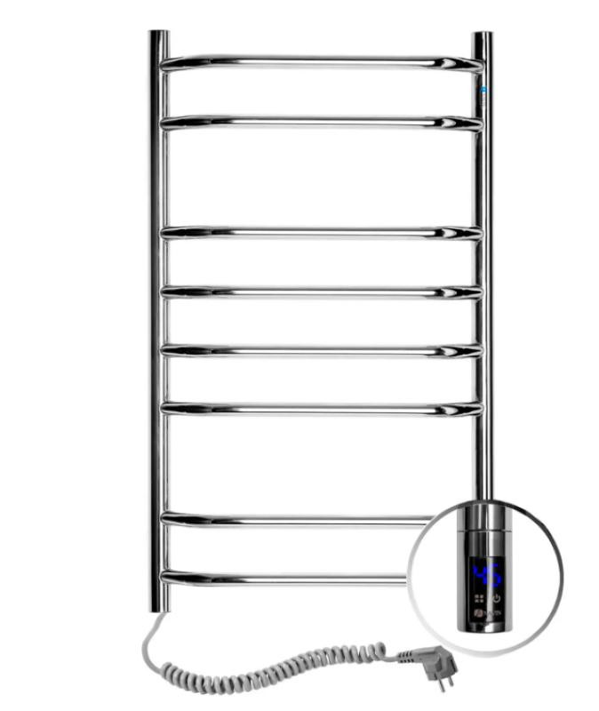 Електрична рушникосушарка Блюз 480х800 сенсор з таймером, від українського виробника NAVIN виготовлениа з харчової нержавіючої сталі марки AISI 304, яка є стійкою до подряпин і механічних пошкоджень, а також володіє високою антикорозійною стійкістю. Товщина стінки перемичок рушникосушарки складає 1,5 мм, а стійок 2 мм. Рушникосушарка має дзеркальну поліровану поверхню, отриману шляхом високоточного електроплазменого полірування.