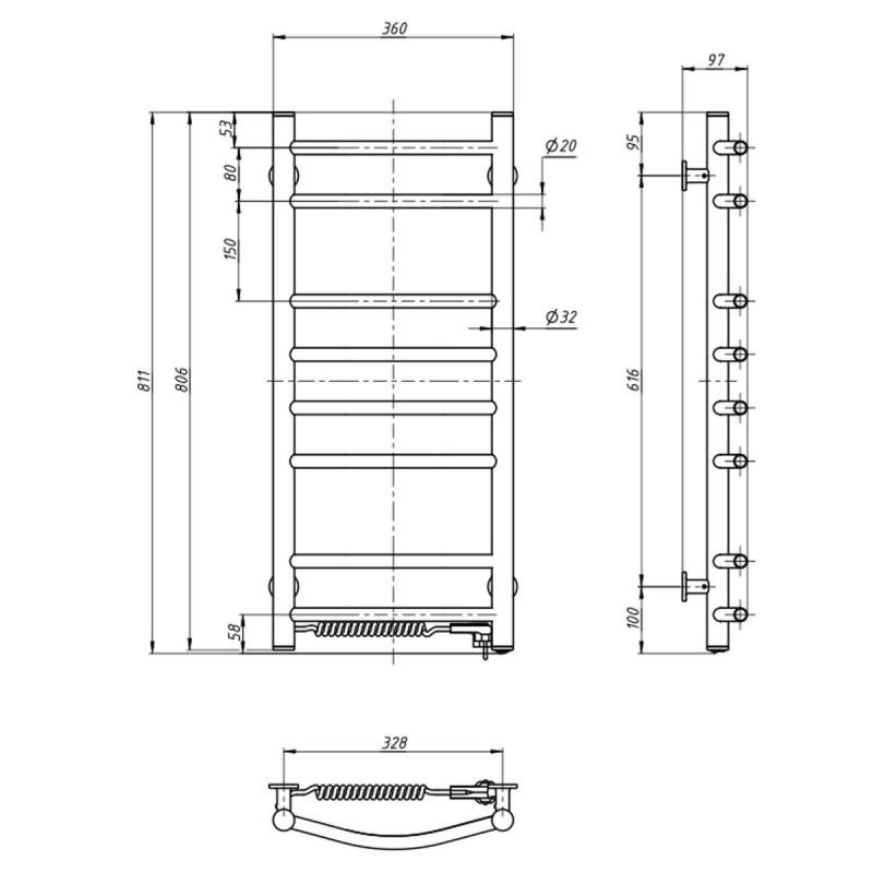Електрична рушникосушарка Камелія 360х800 від українського виробника NAVIN виготовлена з вуглецевої сталі, яка відрізняється високою якістю і міцністю. Модель має порошкове покриття. Товщина стінки перемичок рушникосушарки складає 1,5 мм, а стійок 2 мм.