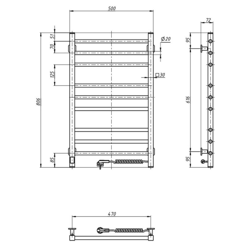 Електричні рушникосушарки Класик Квадро у цілковитій гармонії зі своєю назвою мають досконало класичний дизайн. Колектори моделі виконані з профільної квадратної труби 30х30 мм, а перемички — з круглих трубок діаметром 20 мм. Таке дизайнерське рішення створює відчуття спокою й упевненості. Сушарки для рушників NAVIN Класик Квадро — це безпрограшний вибір для будь-якого інтер'єру.