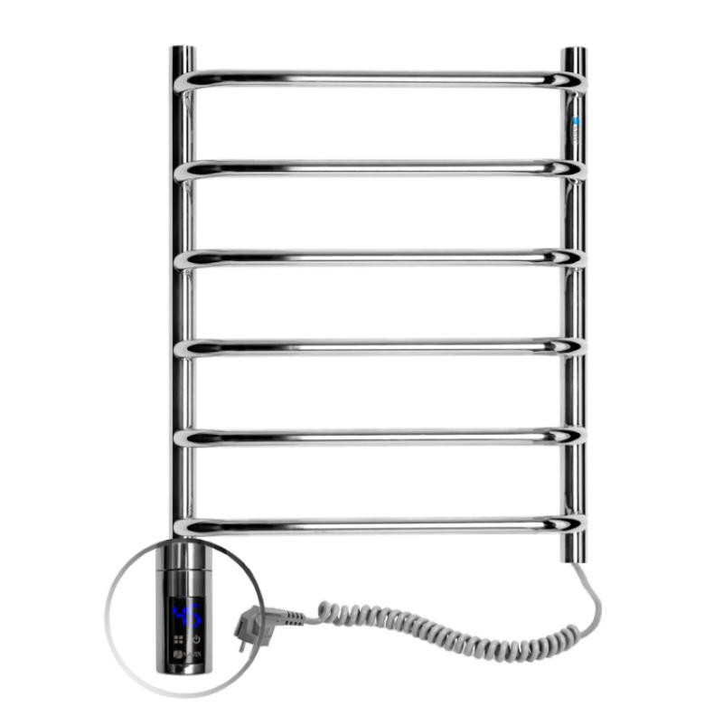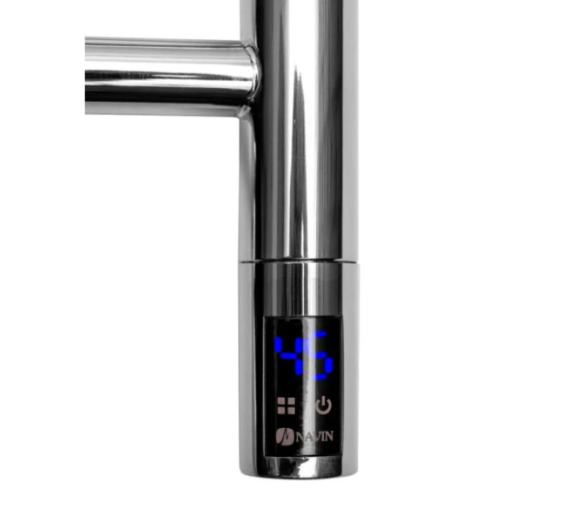 Електрична рушникосушарка Симфонія 480х600 сенсор з таймером від українського виробника NAVIN виготовлениа з харчової нержавіючої сталі марки AISI 304, яка є стійкою до подряпин і механічних пошкоджень, а також володіє високою антикорозійною стійкістю. Товщина стінки перемичок рушникосушарки складає 1,5 мм, а стійок 2 мм. Рушникосушарка має дзеркальну поліровану поверхню, отриману шляхом високоточного електроплазменого полірування.