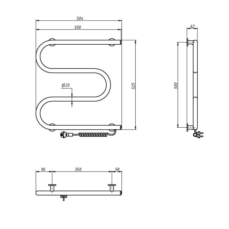 Опис Рушникосушарка Navin Змійовик 500x500 12-000100-5050