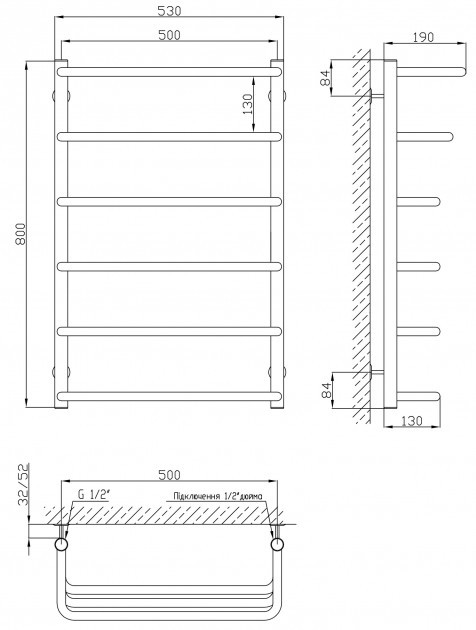 Особливості: Діаметр: стійка d30, товщина 1.5 мм; перемичка d20, товщина 1.5 мм . Максимальна робоча температура 90° C, Робочий тиск 15 атм.