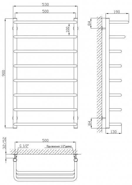 Особливості: Діаметр: стійка d30, товщина 1.5 мм; перемичка d20, товщина 1.5 мм. Максимальна робоча температура 90° C, Робочий тиск 15 атм.