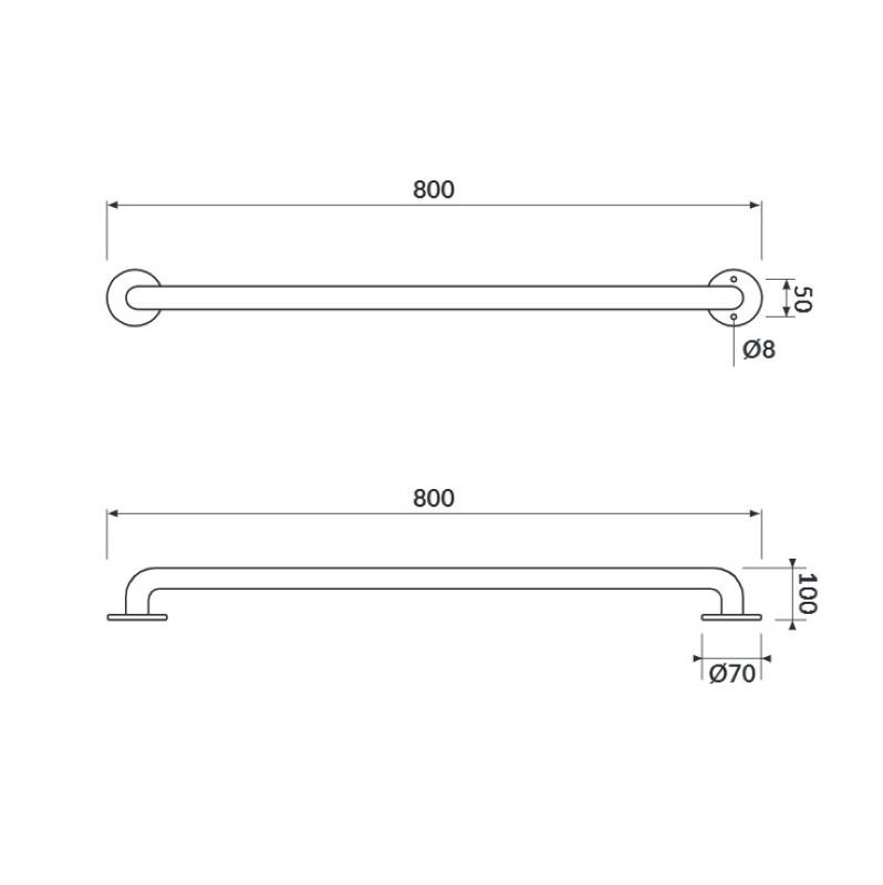 Колекція ETIUDA була спеціально розроблена для людей похилого віку та з обмеженими можливостями. Вона складається з компактного унітазу, умивальника та аксесуарів, які полегшують безпечне користування туалетом та ванною кімнатою без сторонньої допомоги. Серія товарів призначена для оснащення кімнат гігієни та санітарних приміщень в житлових приміщеннях та місцях загального користування, в тому числі в учбових закладах та лікарнях. Настінний поручень виготовлений з міцної хромованої сталі та витримує навантаження до 120 кг.